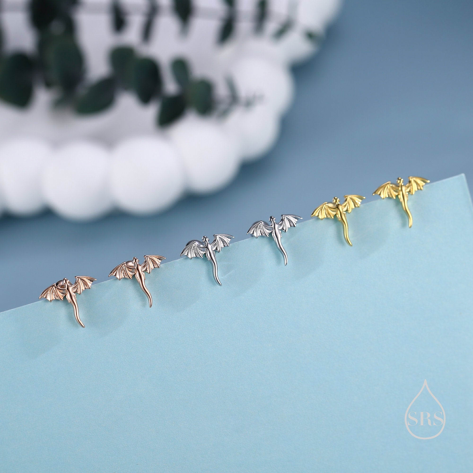 Extra Tiny Dragon Flat Back/Screw Back/ Stud Earrings in Sterling Silver, Silver or Gold or Rose Gold, Sterling Silver Dragon Earrings