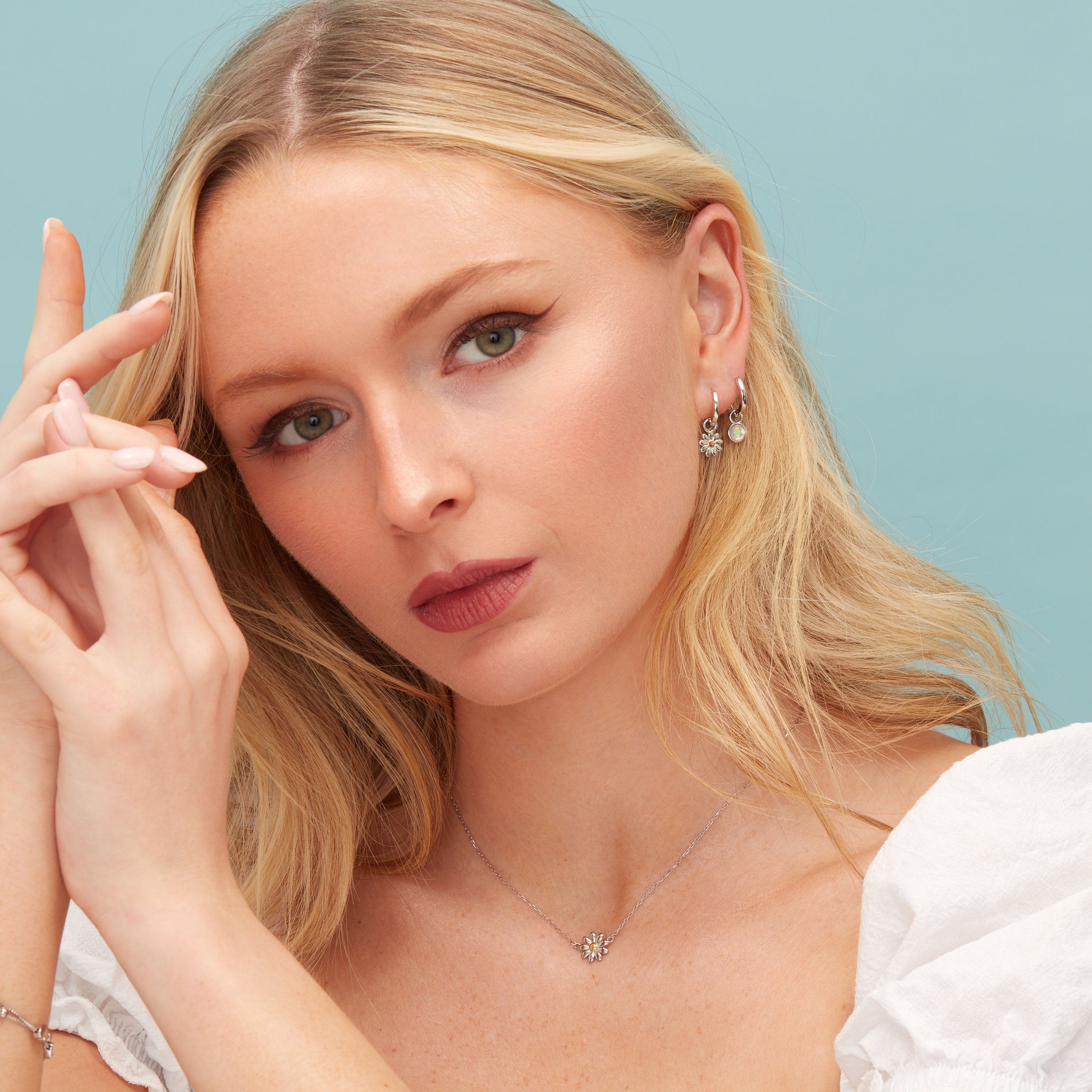 Little Daisy Flower Charmed Hoop Earrings in Sterling Silver - Cute Flower Blossom Huggie Hoop Earrings - Fun, Whimsical